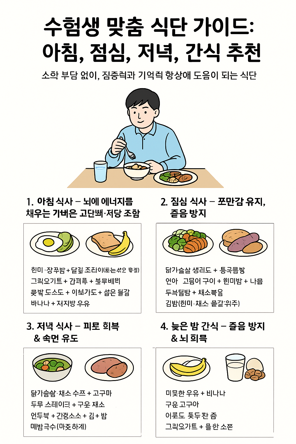 중·고등학교 수험생을 위한 실전 식단 가이드입니다.